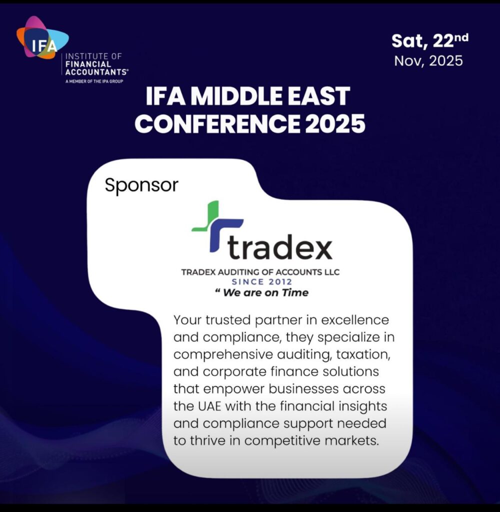 Alhamdulillah, Tradex Auditing of Accounts LLC is honored to announce its partnership as an Official Sponsor of the IFA-UK Middle East Conference 2025, one of the region’s most respected platforms for global tax, finance, and regulatory discussions.